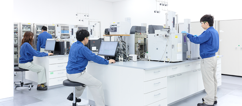 製造部署や研究室等からの依頼をもとに、既存製品および新製品の品質検査業務や、工程管理試験業務、製造方法・分析方法の開発業務に携わります。お客様のご要望に応じた製品の量産化方法を検討したり、分析方法の検討を通じて分析精度を維持・向上したりすることで、当社の高品質な製品づくりに貢献しています。